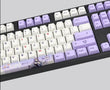 This mechanical keycaps set features various prints of Keqing from the game "Genshin Impact" that are bound together with white and pink colouring.