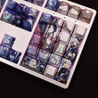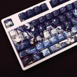 This mechanical keycaps set features various prints of Furina from the Game "Genshin Impact" that are bound together with blue and white colouring, combined with Backlit keycaps, Furina illuminates when LEDs pass through the keycaps.