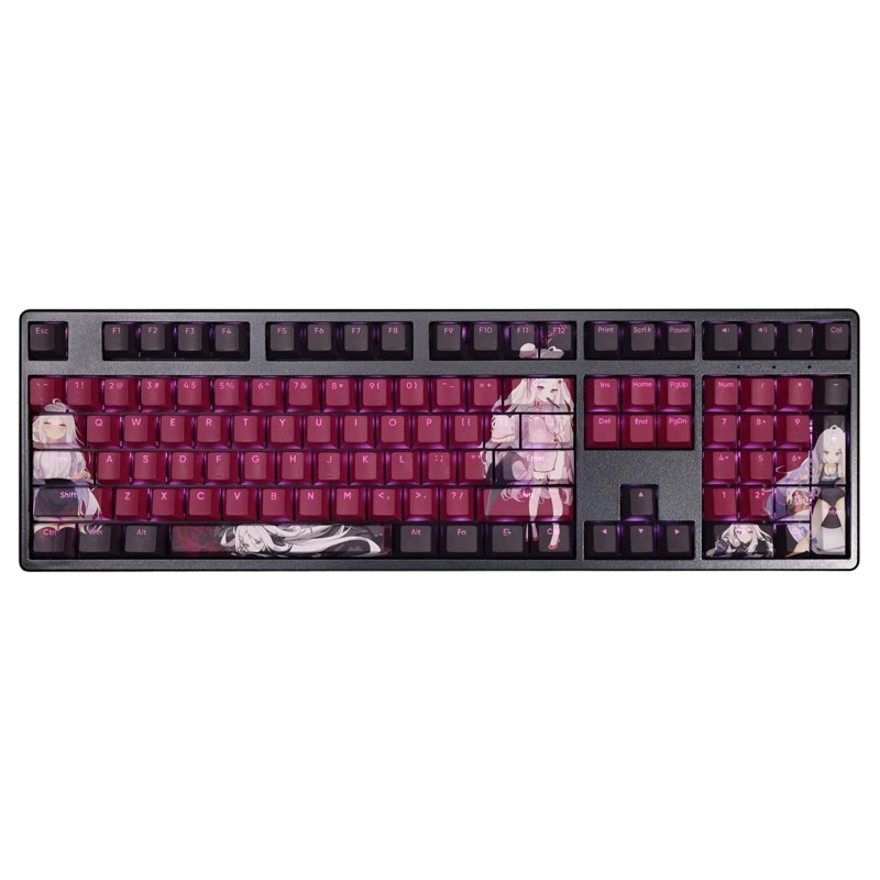 This mechanical keycaps set features various prints of Sorasaki Hina from the game "Blue Archive" that are bound together with red and black colouring, combined with Backlit keycaps, Sorasaki Hina illuminates when LEDs pass through the keycaps.