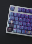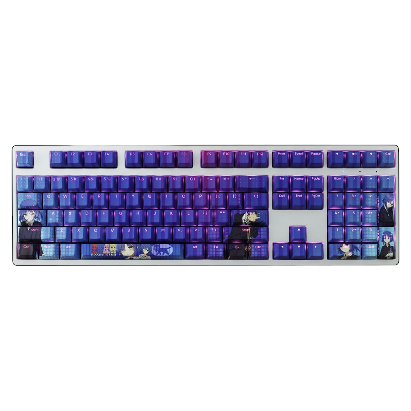 This mechanical keycaps set features various prints of Ryo Yamada from the Anime "Bocchi The Rock!" that are bound together with purple and blue colouring, combined with Backlit keycaps, Ryo Yamada illuminates when LEDs pass through the keycaps.