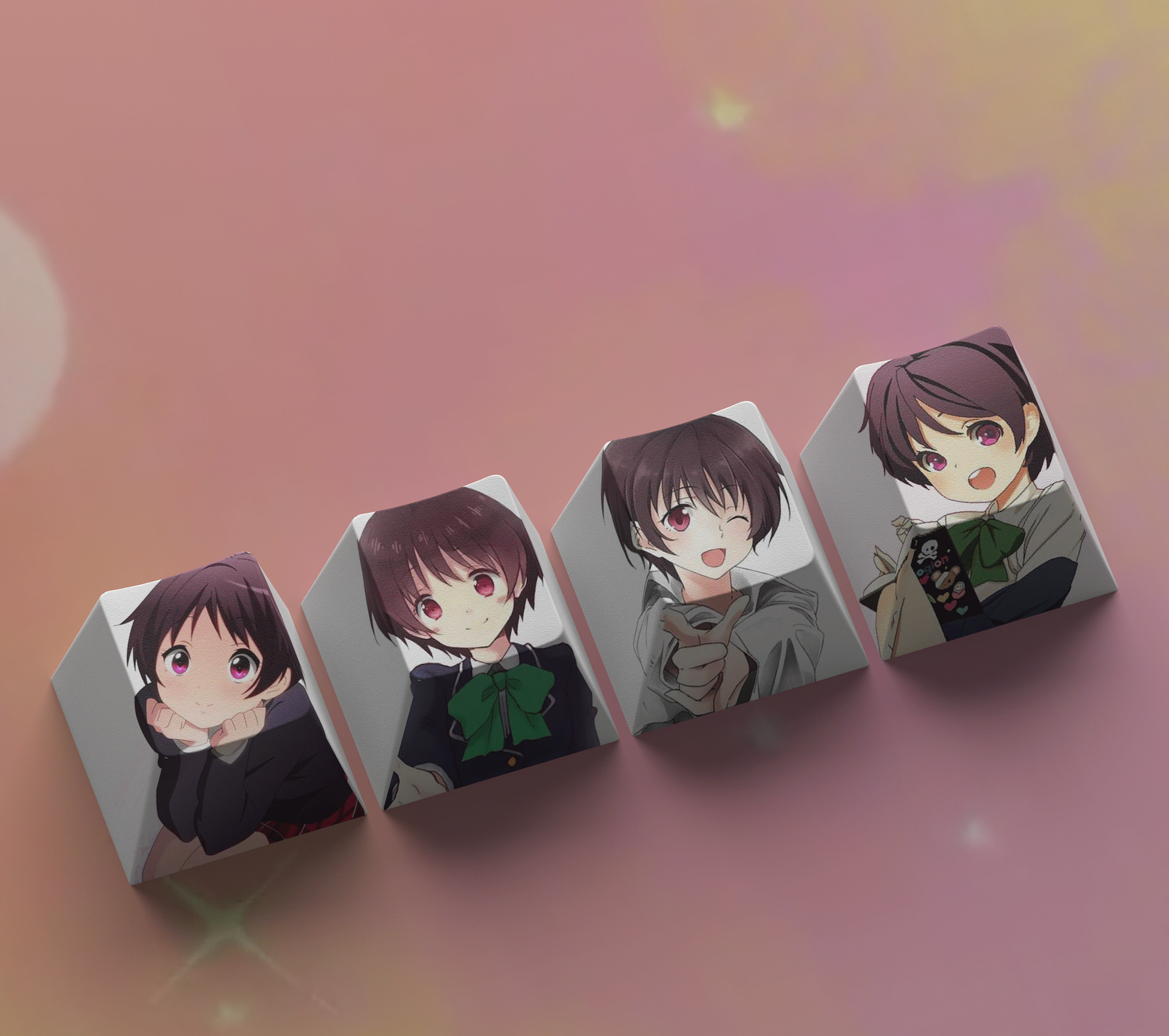 This mechanical keycaps set features various prints of characters from the Anime "Chunibyo".
