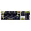This mechanical keycaps set features various prints of Cyberpunk characters, the keyboard is bound together with black and yellow colouring.