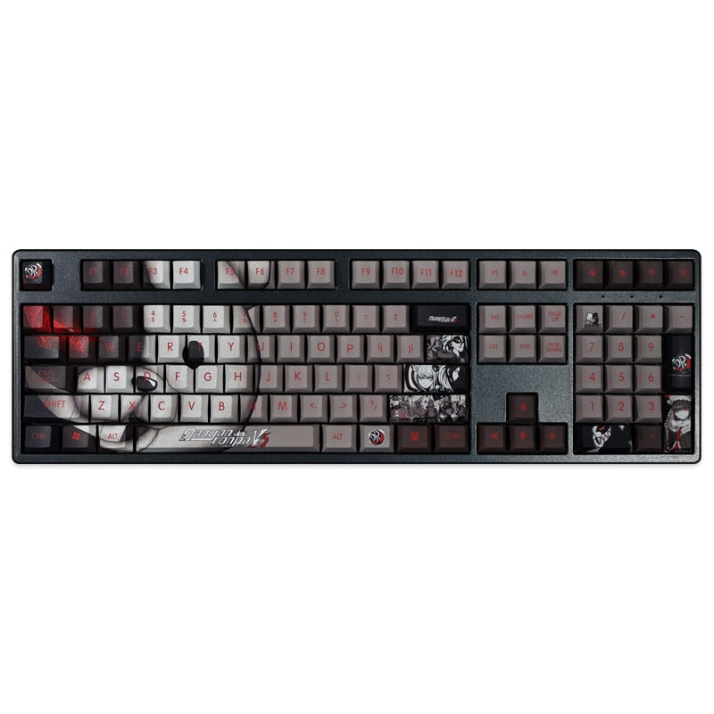 This mechanical keycaps set features various prints of characters from the anime "Danganronpa" that are bound together with black, white and red colouring.