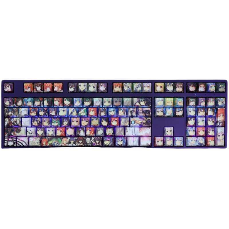 This mechanical keycaps set features various prints of characters faces from the anime "Date A Live", combined with Backlit keycaps, Date A Live faces illuminate when LEDs pass through the keycaps.