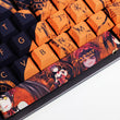 This mechanical keycaps set features various prints of Kurumi Tokisaki from the anime "Date A Live" that are bound together with orange and black colouring.