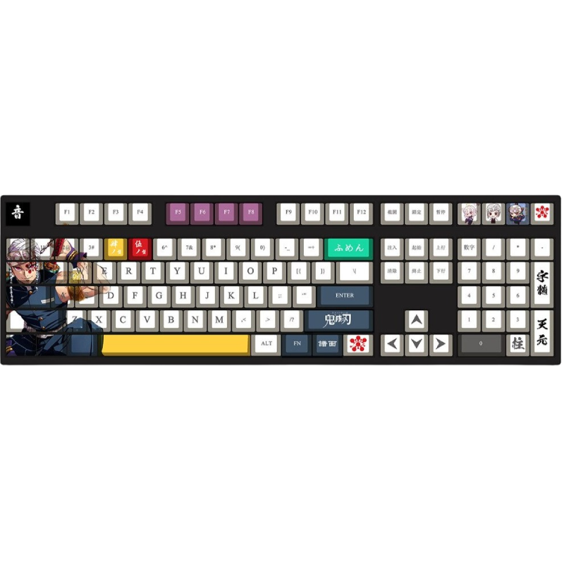 This mechanical keycaps set features various prints of Tengen Uzui from the anime "Demon Slayer" that are bound together with white colouring.