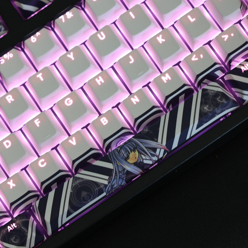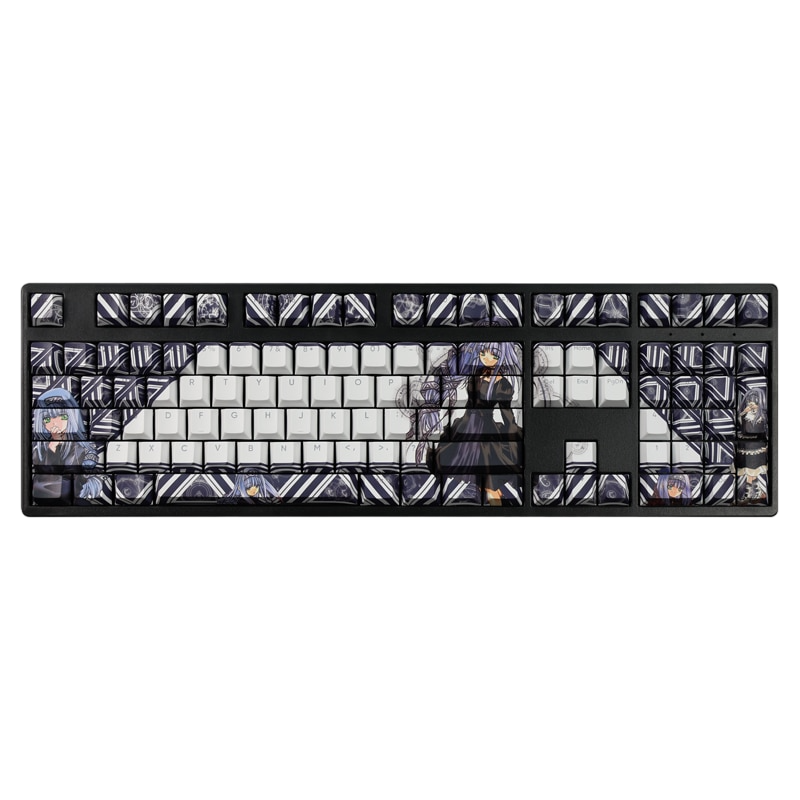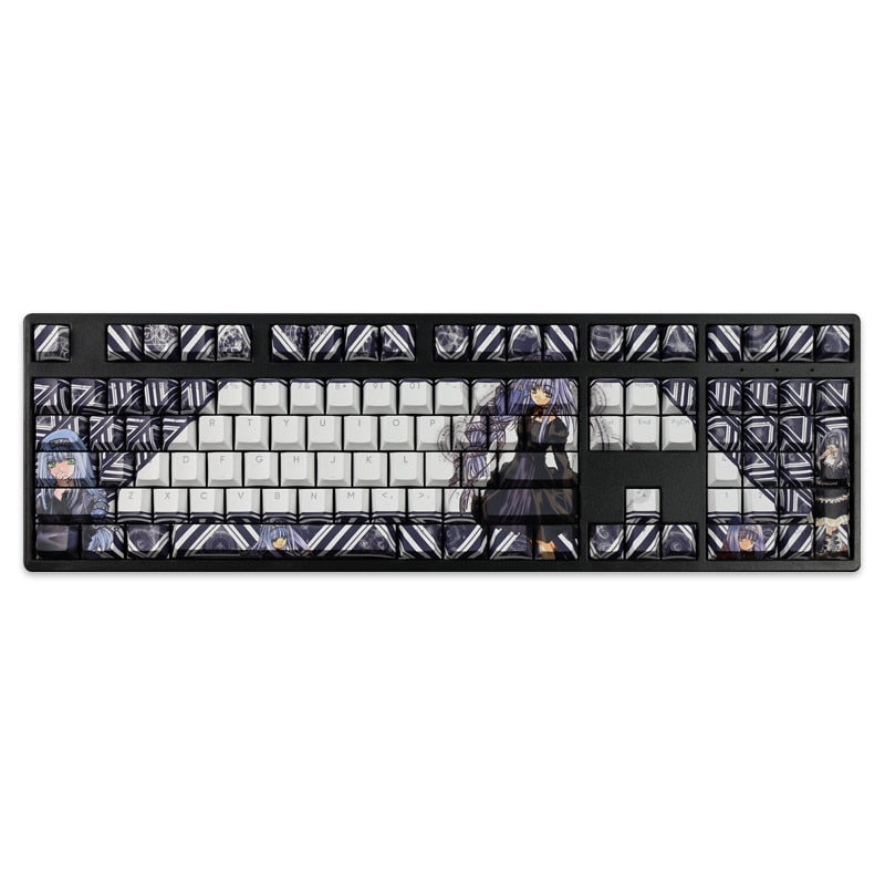 This mechanical keycaps set features various prints of Reverie Metherlence from the Anime "Elemental Gelade" that are bound together with black and white colouring, combined with Backlit keycaps, Reverie Metherlence illuminates when LEDs pass through the keycaps.