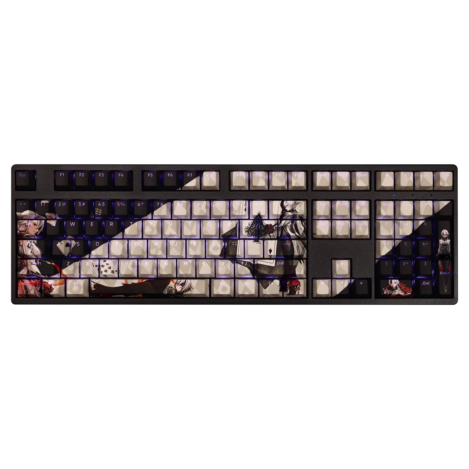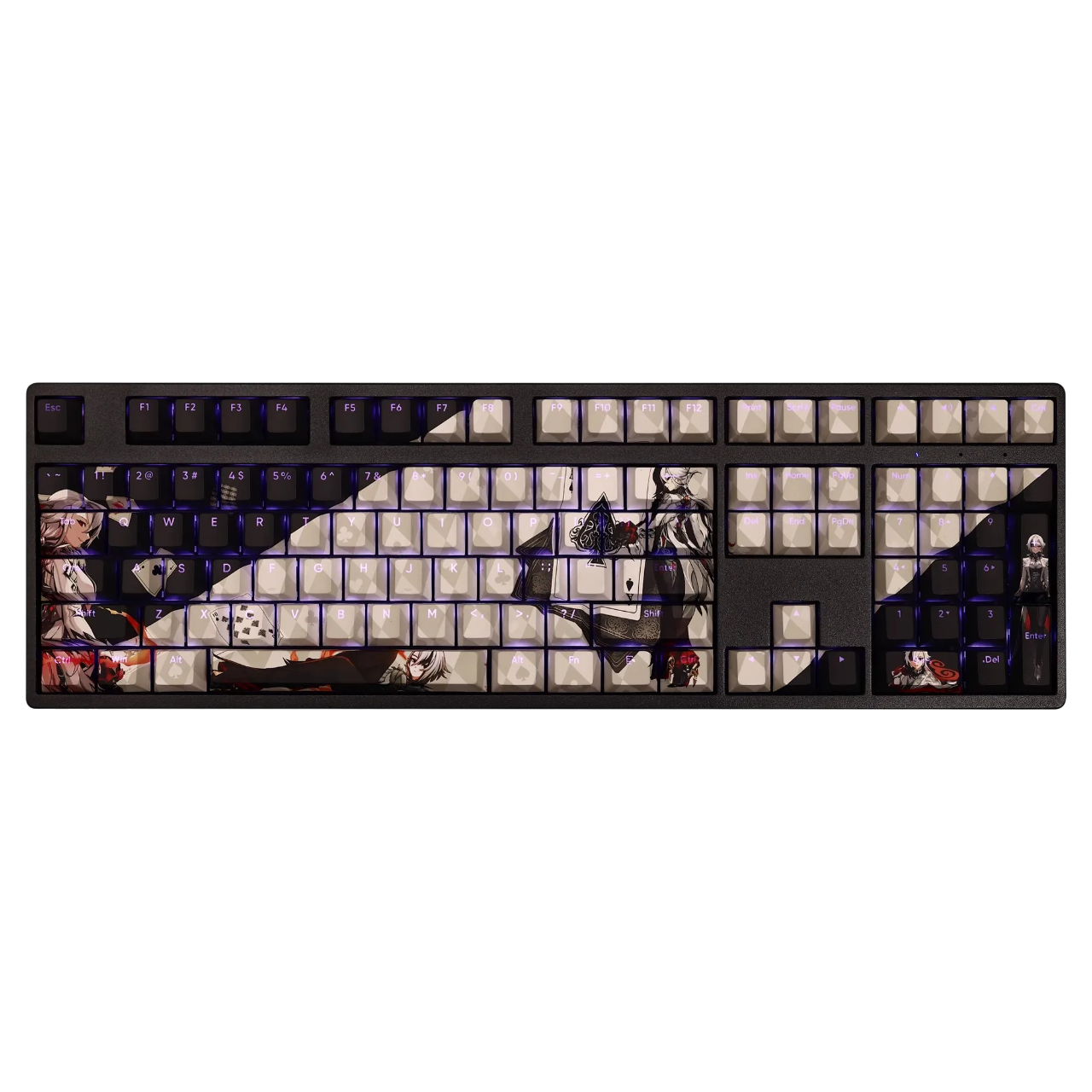 This mechanical keycaps set features various prints of Arlecchino from the Game "Genshin Impact" that are bound together with black and white colouring, combined with Backlit keycaps, Arlecchino illuminates when LEDs pass through the keycaps.