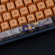 This mechanical keycaps set features various prints of Candace from the game "Genshin Impact" that are bound together with orange and brown colouring.