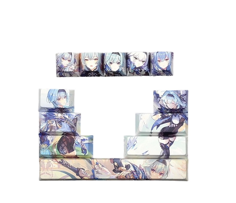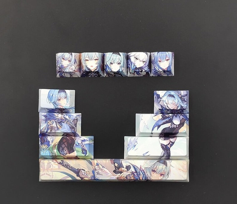 This mechanical keycaps set features various prints of Eula from the game "Genshin Impact".