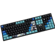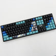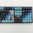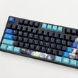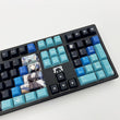 This mechanical keycaps set features various prints of Eula from the game "Genshin Impact" that are bound together with black and blue colouring.