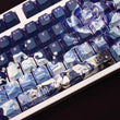 This mechanical keycaps set features various prints of Furina from the Game "Genshin Impact" that are bound together with blue and white colouring, combined with Backlit keycaps, Furina illuminates when LEDs pass through the keycaps.