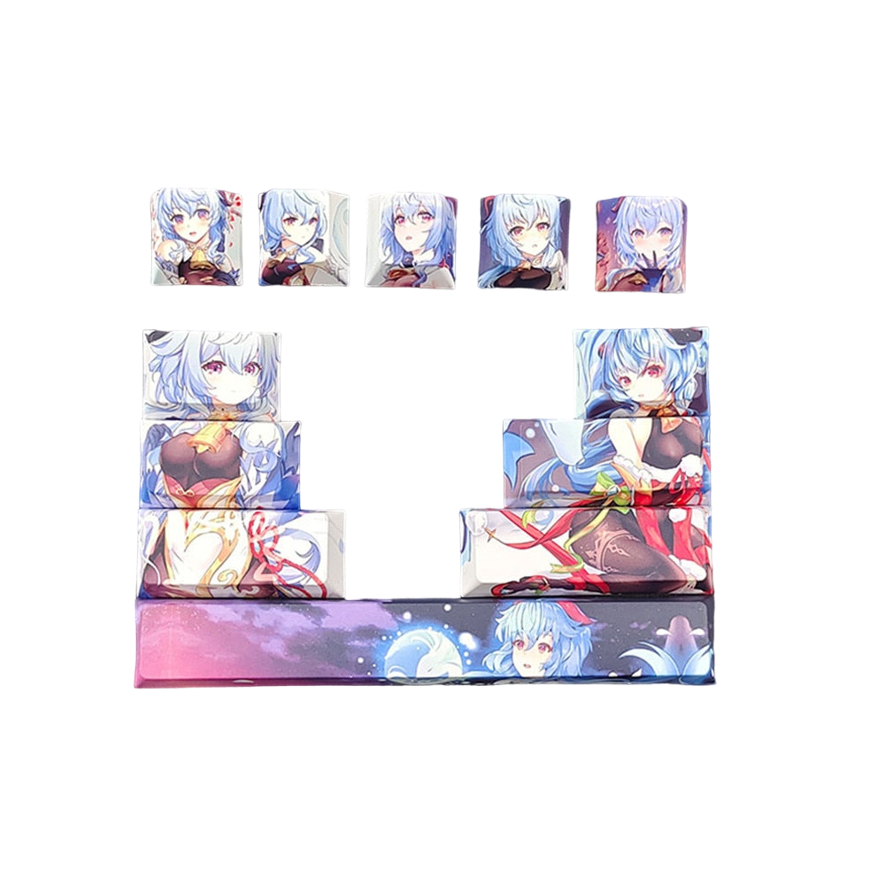 This mechanical keycaps set features various prints of Ganyu from the game "Genshin Impact".