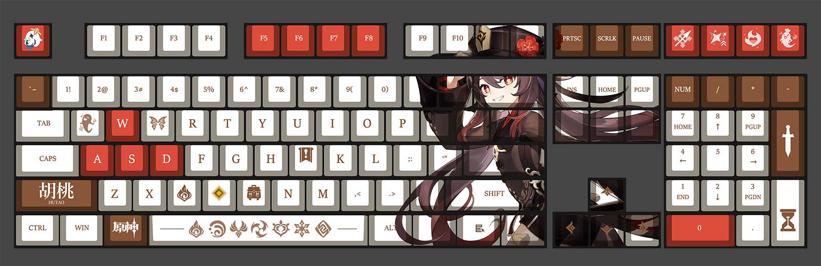 The perfect Keycaps Set for a true fan of Genshin Impact, have your favourite character, Hu Tao come to life on your keyboard.