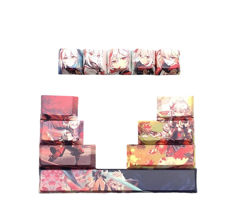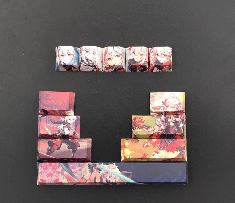 This mechanical keycaps set features various prints of Kaedehara Kazuha from the game "Genshin Impact".