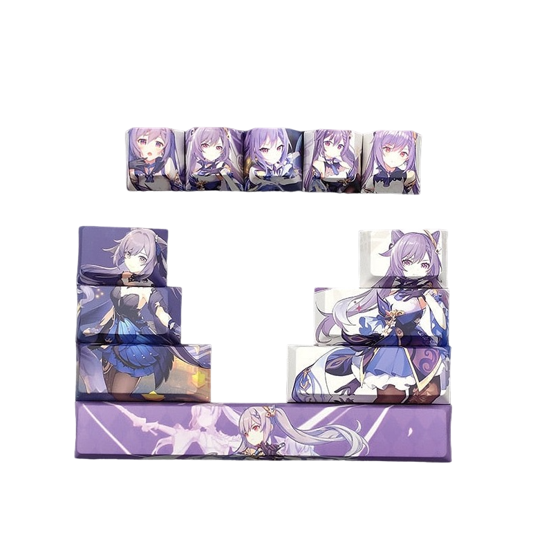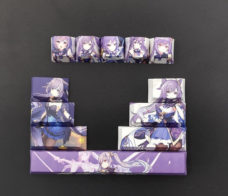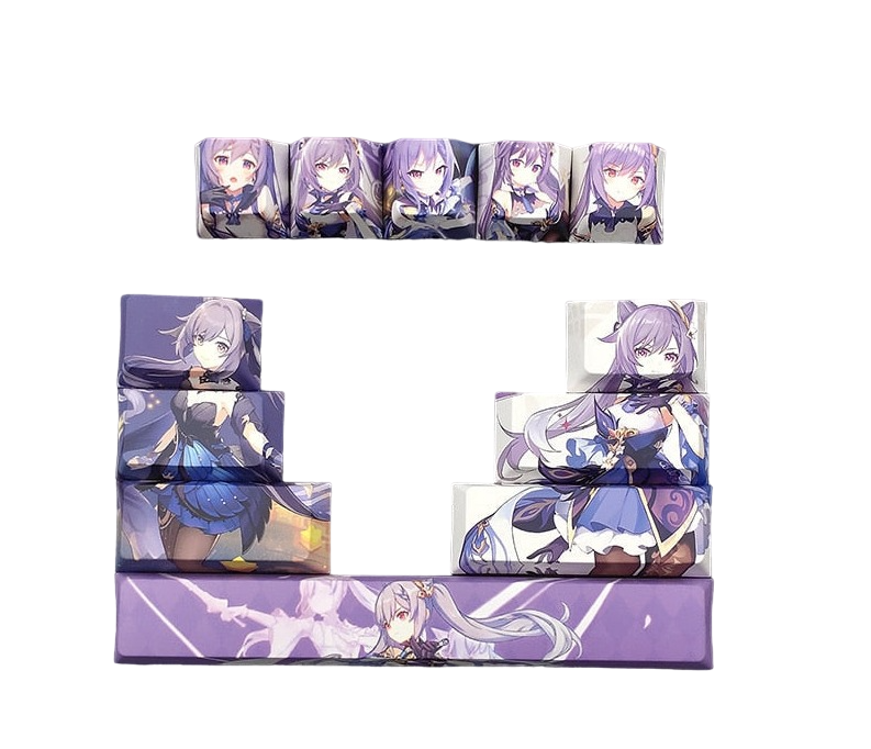 This mechanical keycaps set features various prints of Keqing from the game "Genshin Impact".