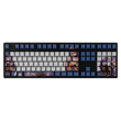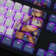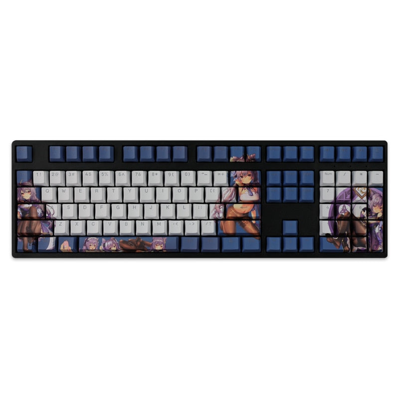 This mechanical keycaps set features various prints of Keqing from the Game "Genshin Impact" that are bound together with white and dark blue colouring, combined with Backlit keycaps, Keqing illuminates when LEDs pass through the keycaps.