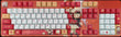 This mechanical keycaps set features various prints of Klee from the game "Genshin Impact" that are bound together with white, red and orange colouring.