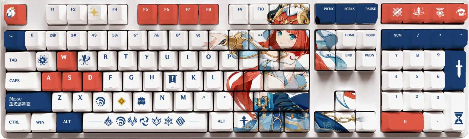 The perfect Keycaps Set for a true fan of Genshin Impact, have your favourite character, Nilou come to life on your keyboard.