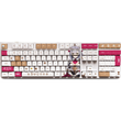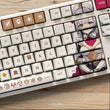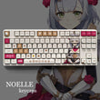 This mechanical keycaps set features various prints of Noelle from the game "Genshin Impact" that are bound together with white, pink and brown colouring.