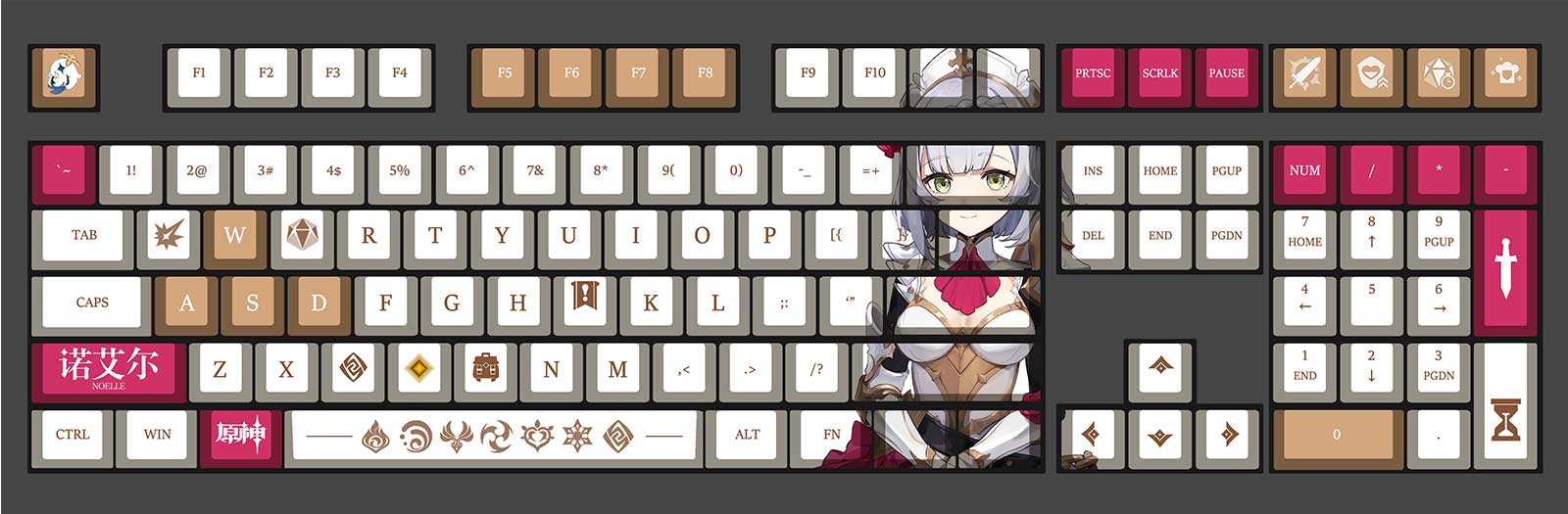 The perfect Keycaps Set for a true fan of Genshin Impact, have your favourite character, Noelle come to life on your keyboard.