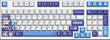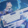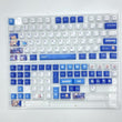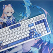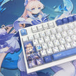 This mechanical keycaps set features various prints of Sangonomiya Kokomi from the game "Genshin Impact" that are bound together with white, blue and purple colouring.