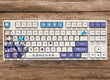 This mechanical keycaps set features various prints of Sangonomiya Kokomi from the game "Genshin Impact" that are bound together with white and purple colouring.