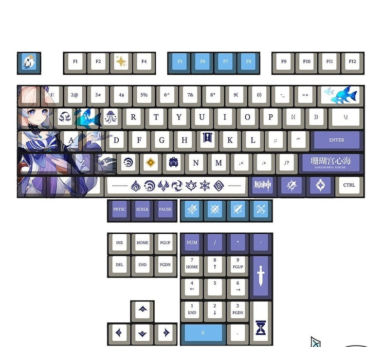 The perfect Keycaps Set for a true fan of Genshin Impact, have your favourite character, Sangonomiya Kokomi come to life on your keyboard.