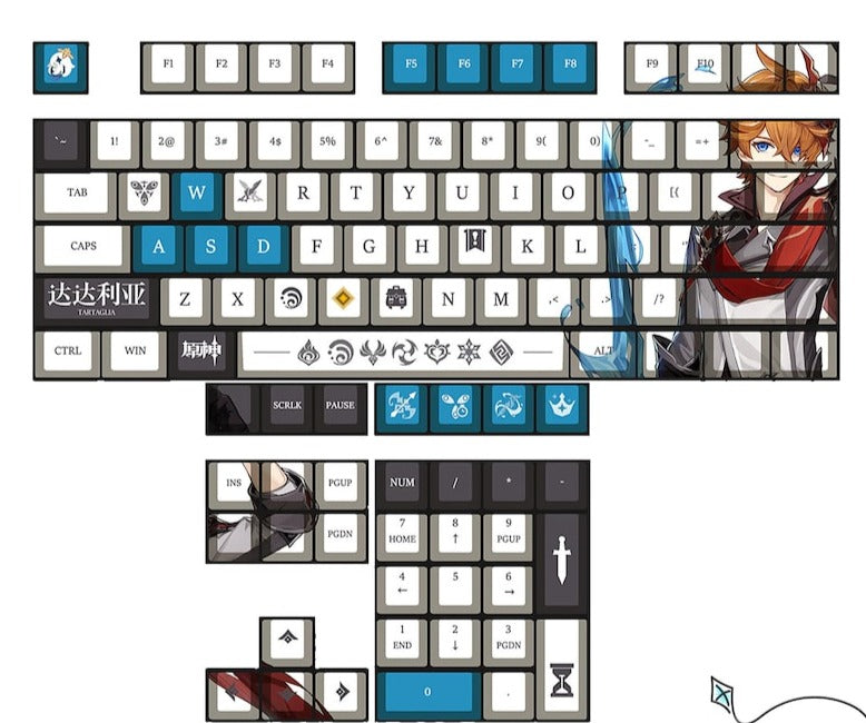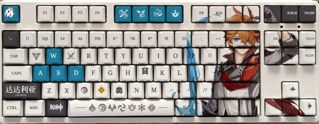 The perfect Keycaps Set for a true fan of Genshin Impact, have your favourite character, Tartaglia come to life on your keyboard.