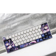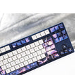This mechanical keycaps set features various prints of Thunder General from the game "Genshin Impact" that are bound together with white and blue colouring.