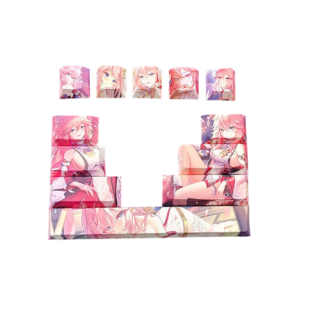 This mechanical keycaps set features various prints of Yae Miko from the game "Genshin Impact".