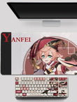 This mechanical keycaps set features various prints of Yanfei from the game "Genshin Impact" that are bound together with white and red colouring.