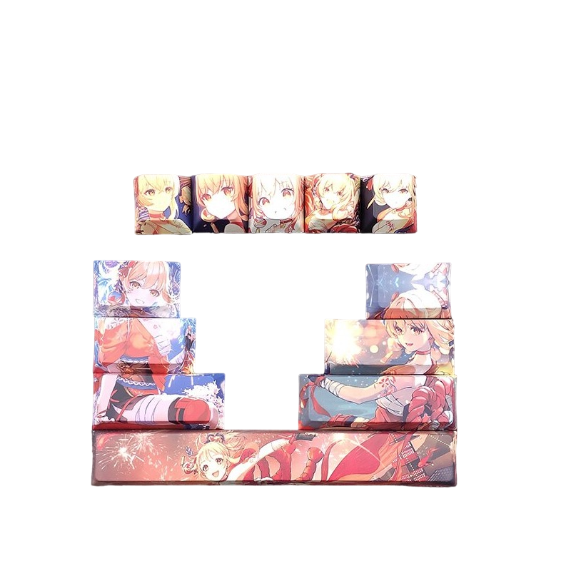 This mechanical keycaps set features various prints of Yoimiya from the game "Genshin Impact".