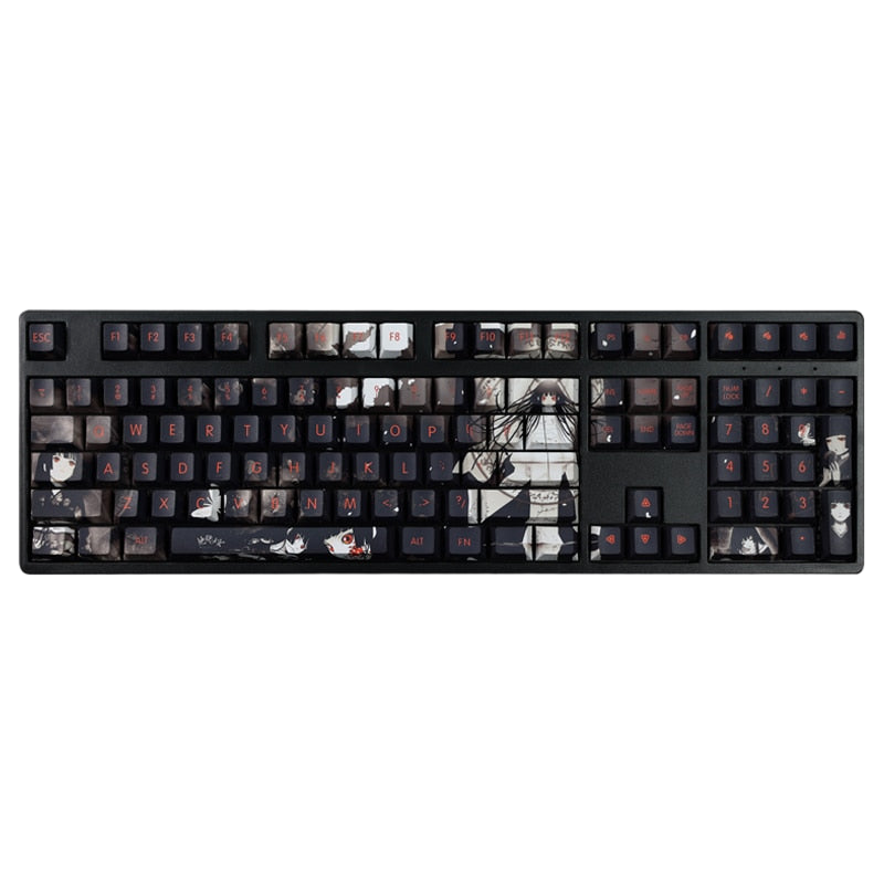 This mechanical keycaps set features various prints of Ai Enma from the anime "Hell Girl" that are bound together with black and white colouring.