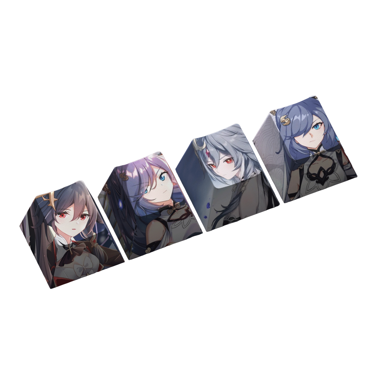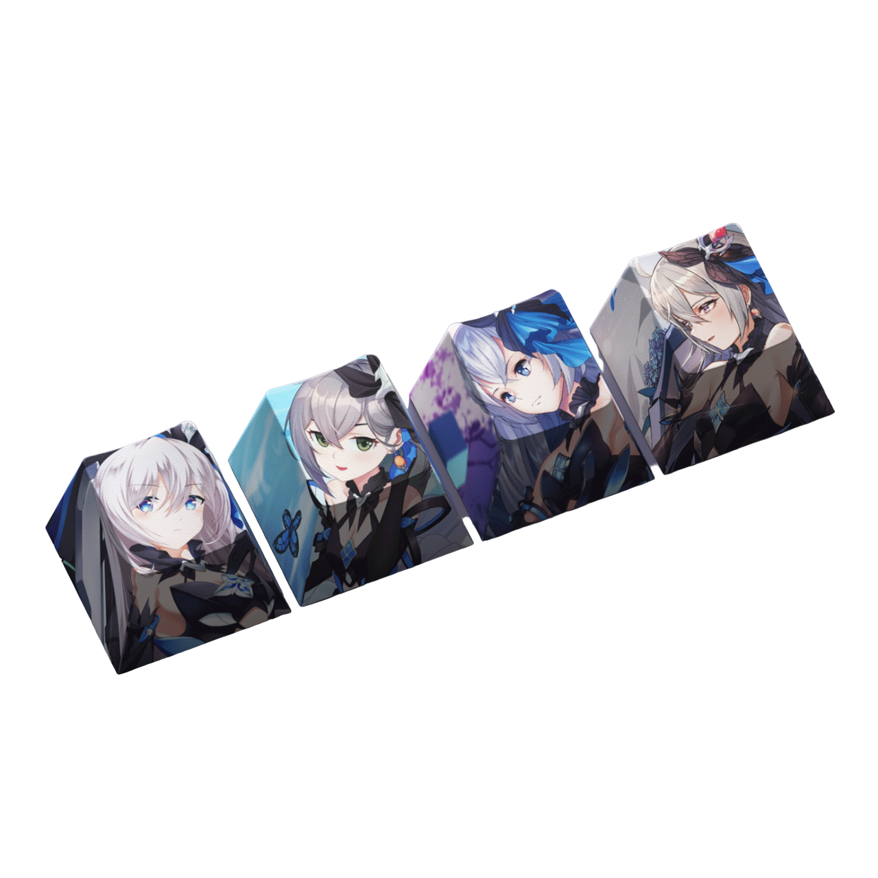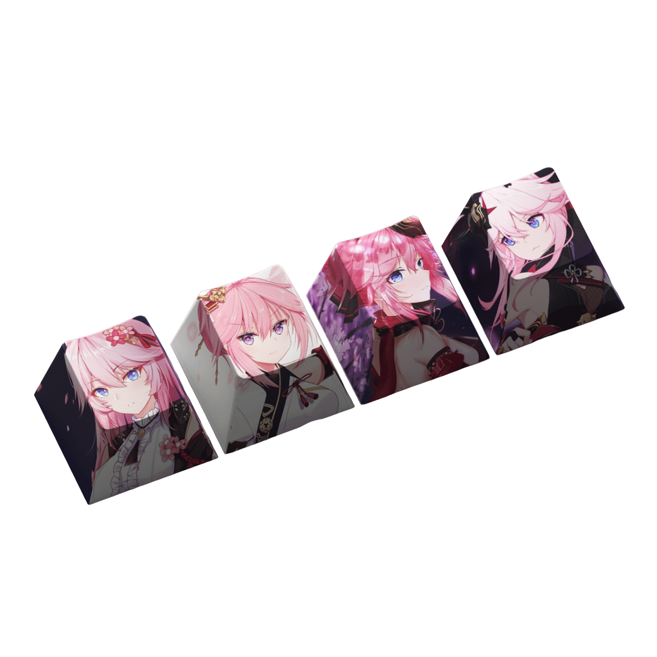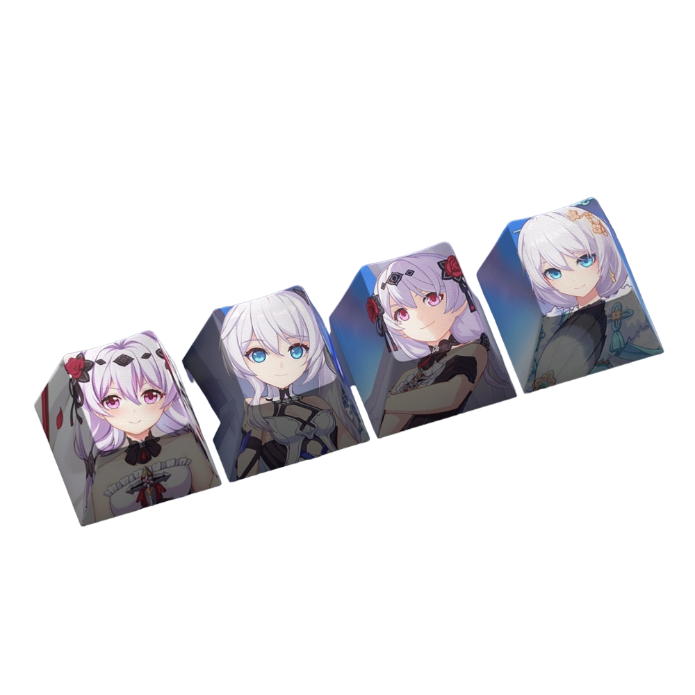 This mechanical keycaps set features various prints of characters from the Game "Honkai".