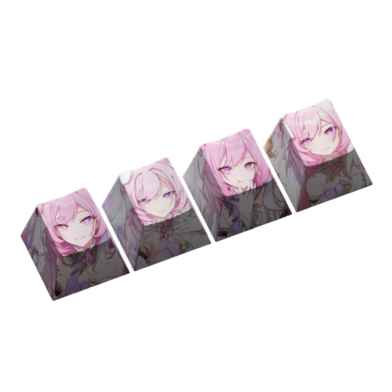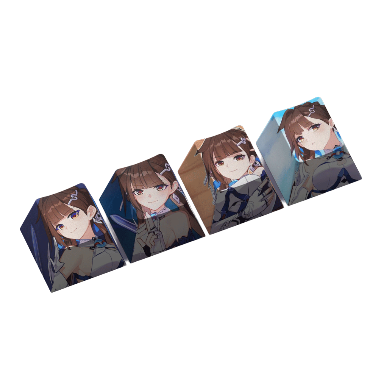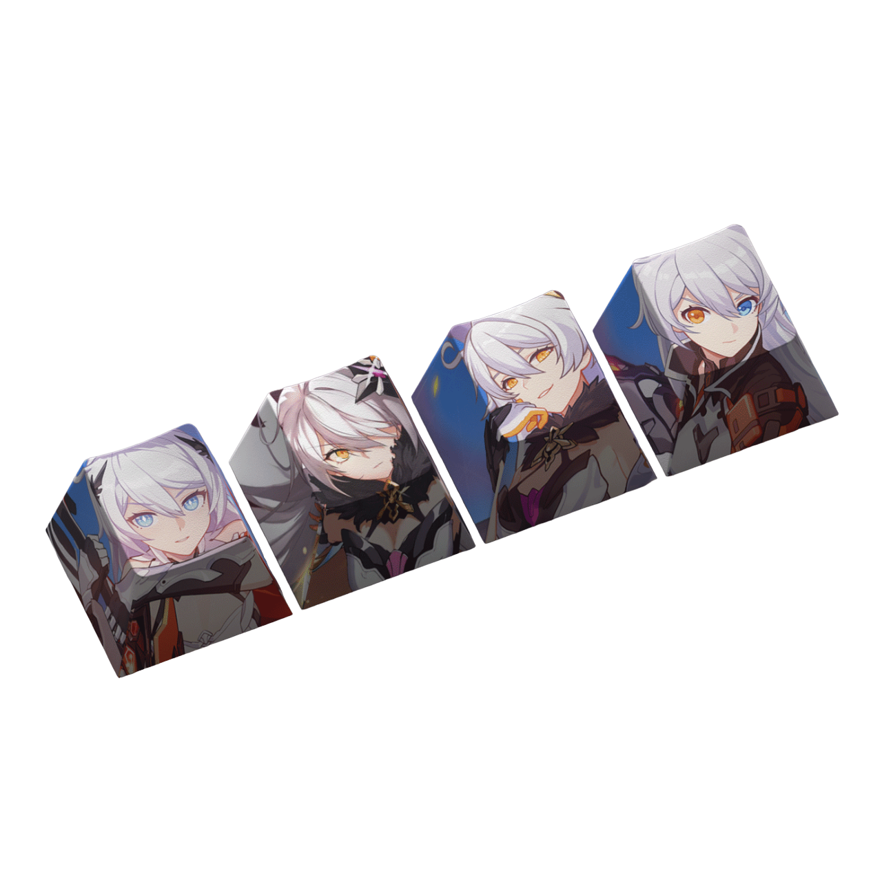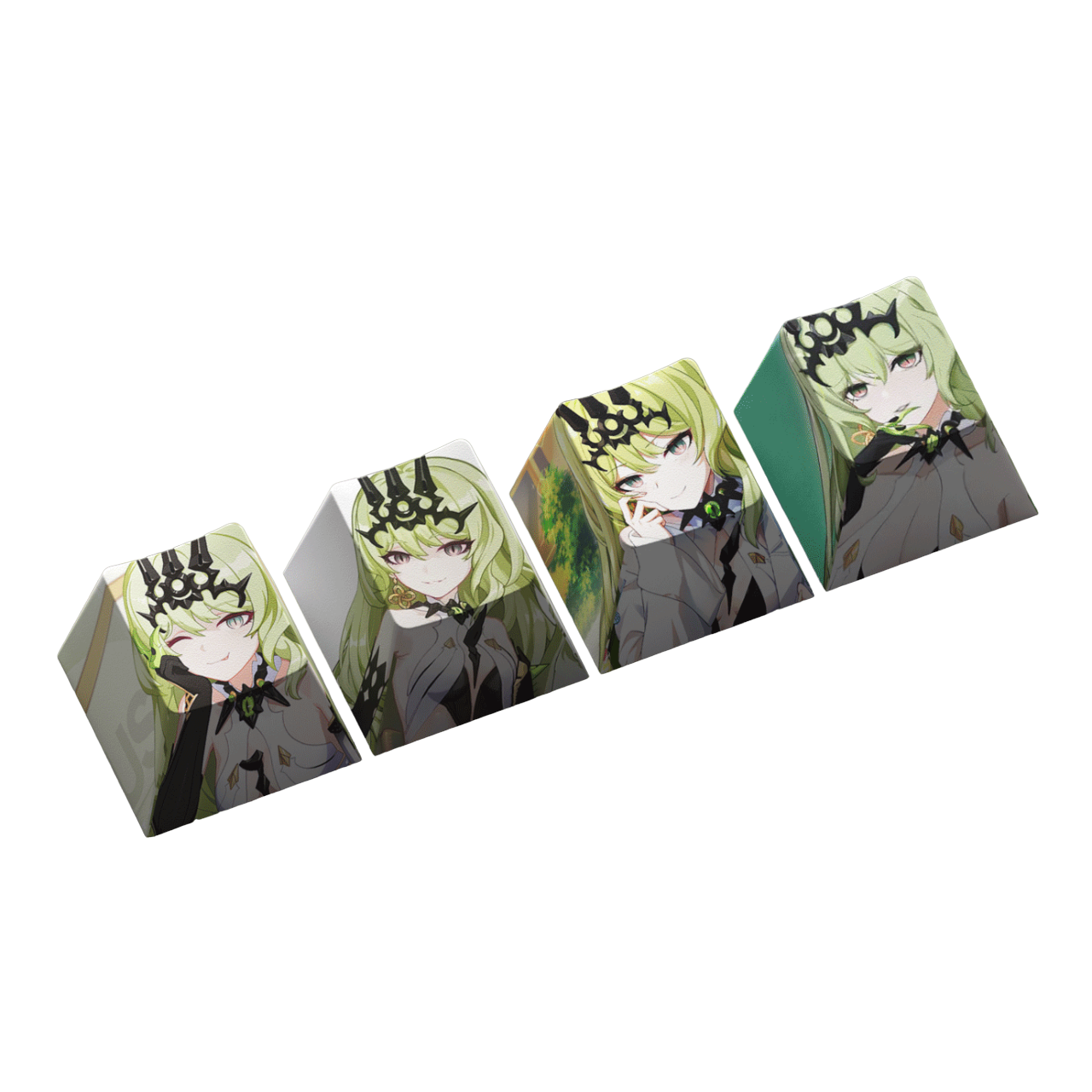 This mechanical keycaps set features various prints of characters from the Game "Honkai".