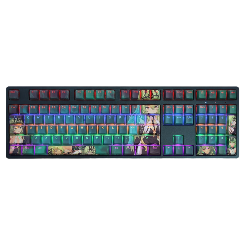 This mechanical keycaps set features various prints of Mobius from the Game "Honkai" that are bound together with green colouring, combined with Backlit keycaps, Mobius illuminates when LEDs pass through the keycaps.