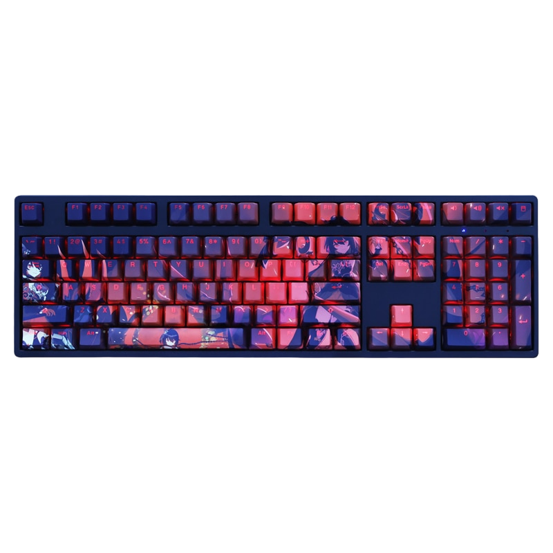 This mechanical keycaps set features various prints of Seele Vollerei from the Game "Honkai" that are bound together with black, red and blue colouring, combined with Backlit keycaps, Seele Vollerei illuminates when LEDs pass through the keycaps.