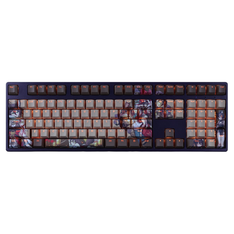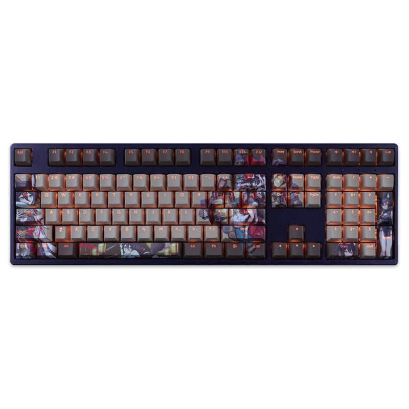 This mechanical keycaps set features various prints of Tingyun from the Game "Honkai" that are bound together with brown colouring, combined with Backlit keycaps, Tingyun illuminates when LEDs pass through the keycaps.