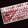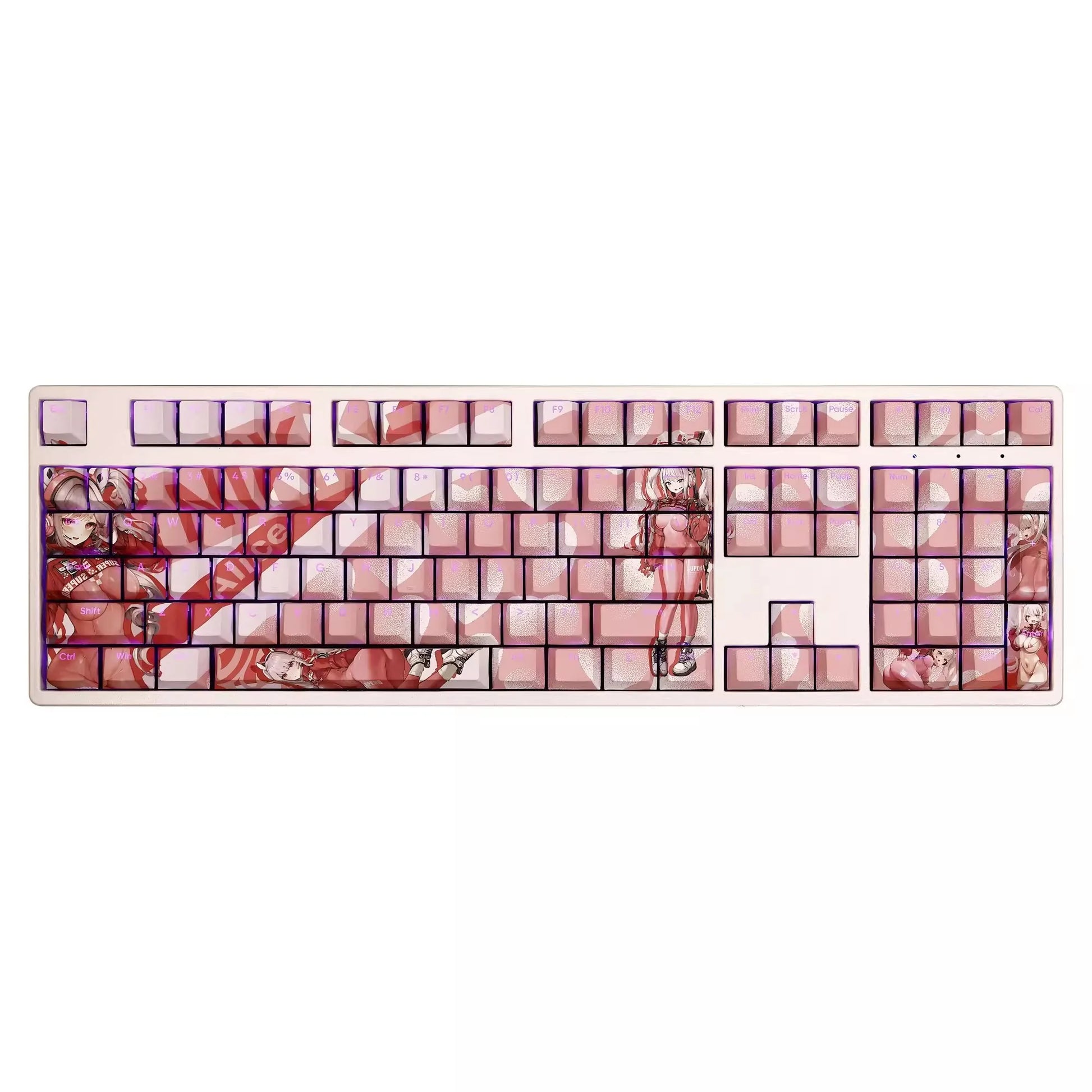 This mechanical keycaps set features various prints of Alice from the game "Nikke" that are bound together with white and pink colouring, combined with Backlit keycaps, Alice illuminates when LEDs pass through the keycaps.