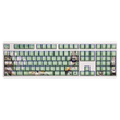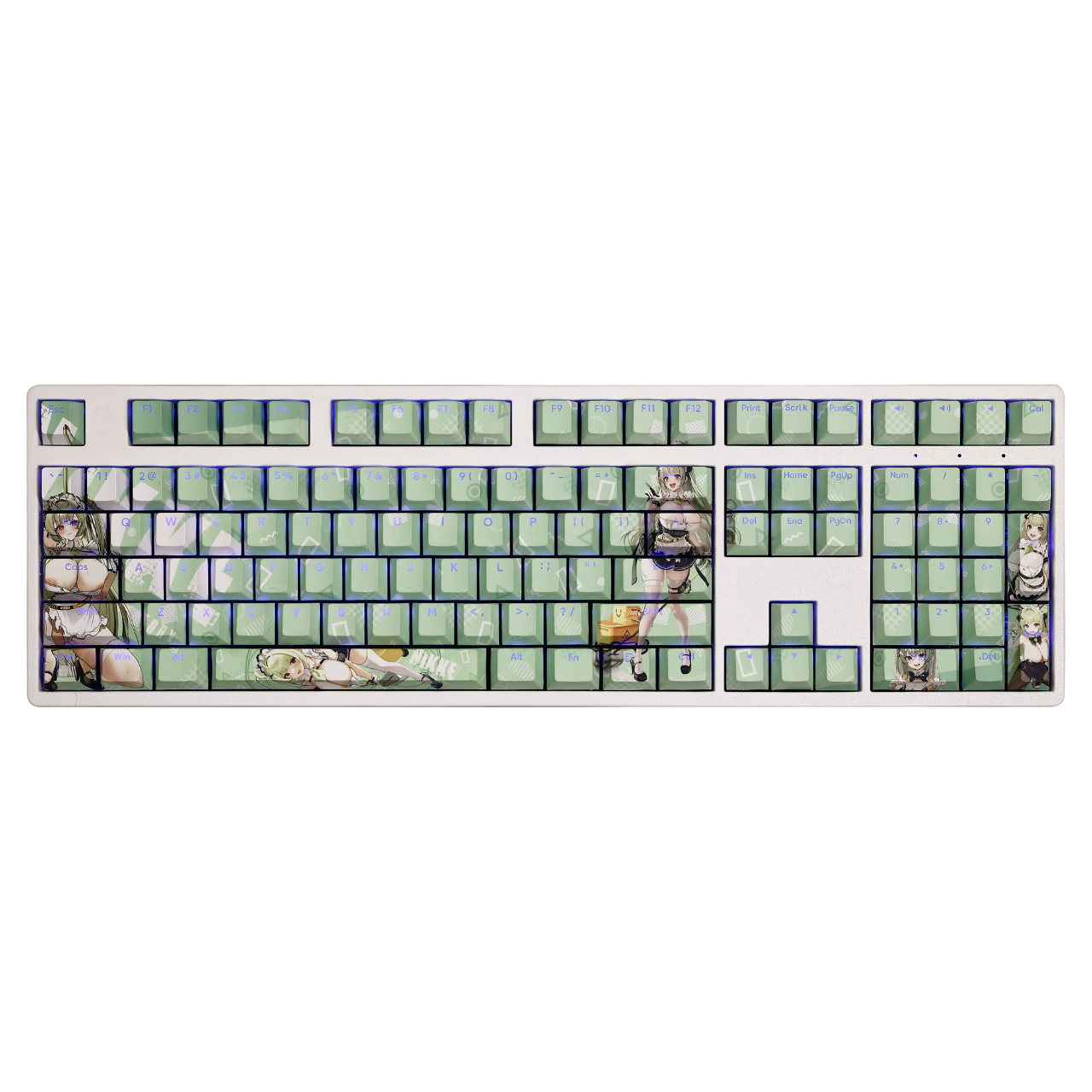 This mechanical keycaps set features various prints of Soda from the game "Nikke" that are bound together with white, green colouring, combined with Backlit keycaps, Soda illuminates when LEDs pass through the keycaps.