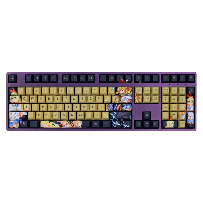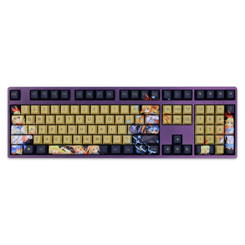 This mechanical keycaps set features various prints of Chitoge Kirisaki from the Anime "Nisekoi" that are bound together with yellow and black colouring.