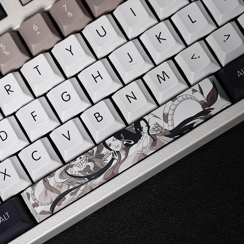 This mechanical keycaps set features various prints of Boa Hancock from the anime "One Piece" that are bound together with black and white colouring.