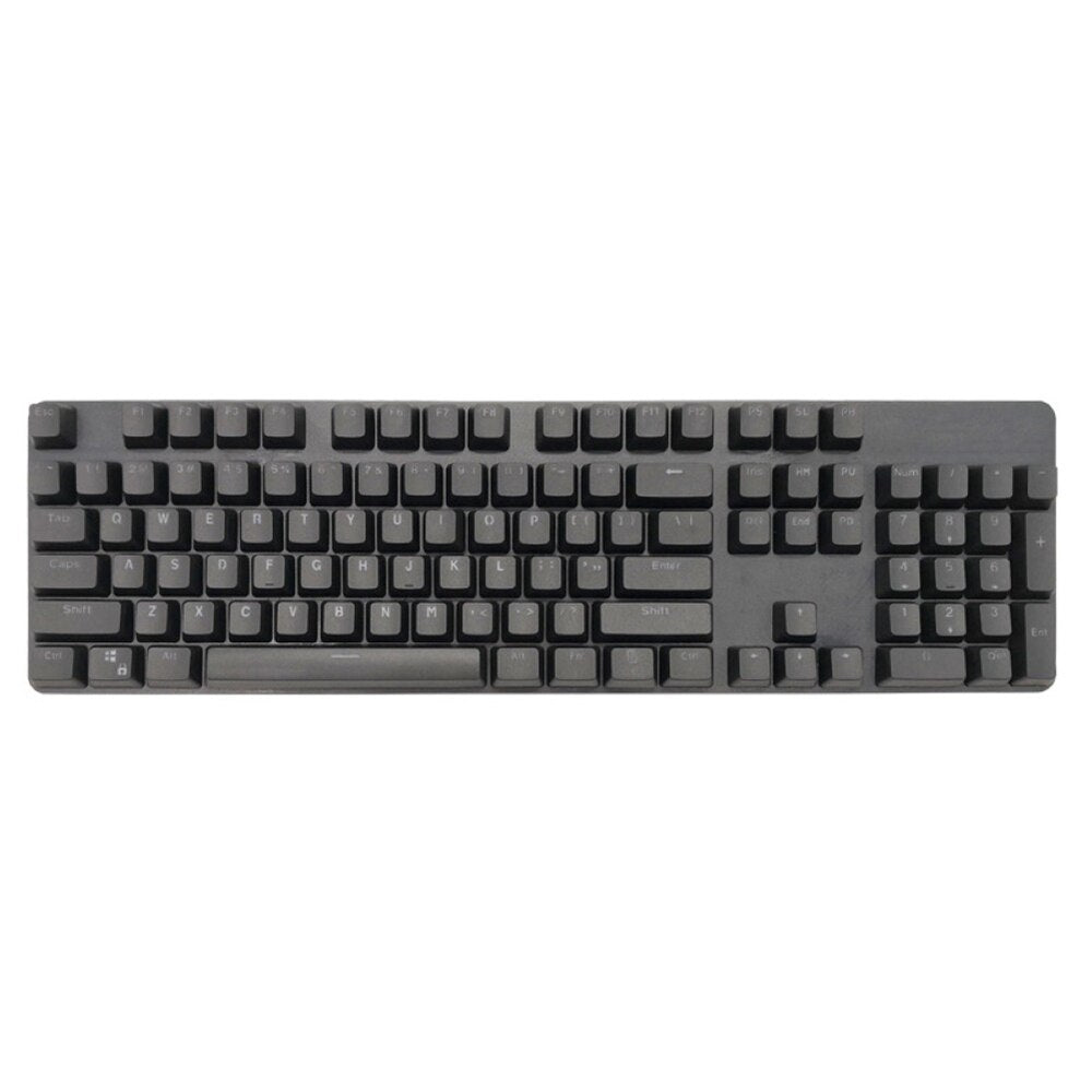 This mechanical keycap set features the color Black, which is combined with backlit keycaps, which makes light illuminate through the key caps.