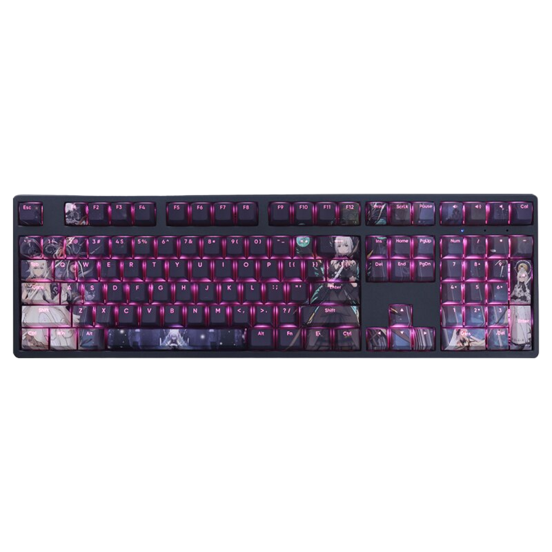 This mechanical keycaps set features various prints of Liv from the Game "Punishing Gray Raven" that are bound together with purple and black colouring, combined with Backlit keycaps, Liv illuminates when LEDs pass through the keycaps.