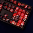 This mechanical keycaps set features various prints of Mecklenburg from the Game "Azur Lane" that are bound together with red and black, combined with Backlit keycaps, Mecklenburg illuminates when LEDs pass through the keycaps.