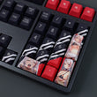 This mechanical keycaps set features various prints of Prinz Eugen from the Game "Azur Lane" that are bound together with red and black colouring.