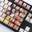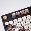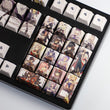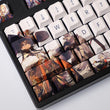 This mechanical keycaps set features various prints of characters from the Game "Azur Lane" that are bound together with white, purple and yellow colouring.