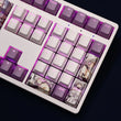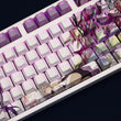 This mechanical keycaps set features various prints of Castorice from the Game "Honkai" that are bound together with white and pink colouring, combined with Backlit keycaps, Castorice illuminates when LEDs pass through the keycaps.