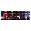 This mechanical keycaps set features various prints of Reze from the anime "Chainsaw Man" that are bound together with black, red and blue colouring, combined with Backlit keycaps, Reze illuminates when LEDs pass through the keycaps.
